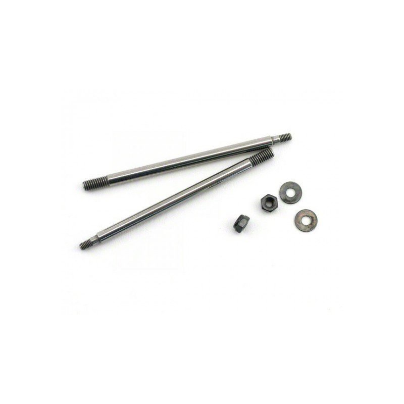 Lot de 2 axes de piston arrière de 63 mm (diam. 3,5 mm) pour amortisseurs Big Shock du buggy 1/8 Inferno MP9/MP10/Neo-TKI2 (réf. K.IFW149-02), vendus avec écrous et rondelles, assurant un guidage précis du piston.