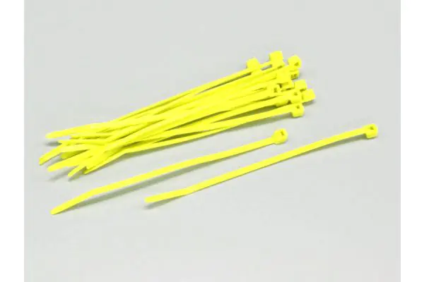 Cet ensemble de 18 colliers de serrage de 102 mm Kyosho (réf. K.1700KY) permet de fixer proprement câbles et durites sur châssis RC.