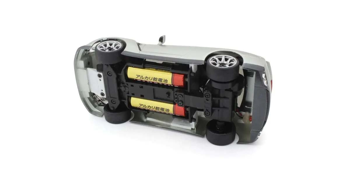 Voiture de piste électrique RWD prête à rouler 1/28, châssis First Mini‑Z (MR‑03 avec suspension), moteur brushed, variateur ESC intégré, carrosserie Nissan GT‑R R35 argentée, émetteur 2,4 GHz avec chronomètre. Réf:K.66608A