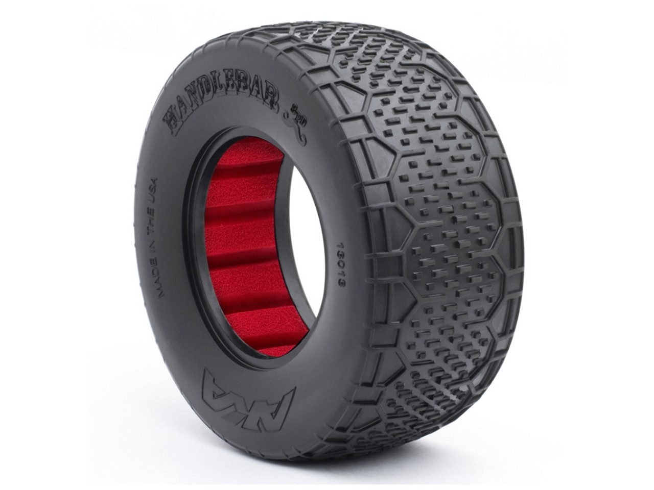 Cette paire de pneus 1/10 AKA Handlebar Wide Super Soft (réf. AKA13013VR) avec insert rouge est idéale sur pistes dures extérieures.