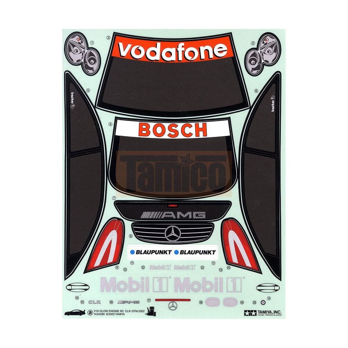Tamiya 19494063 – Planche de décalcomanies pour Mercedes CLK-DTM 2002 AMG – Planche de stickers officiels pour reproduire fidèlement la décoration de la Mercedes CLK-DTM 2002 AMG sur les modèles Tamiya compatibles.